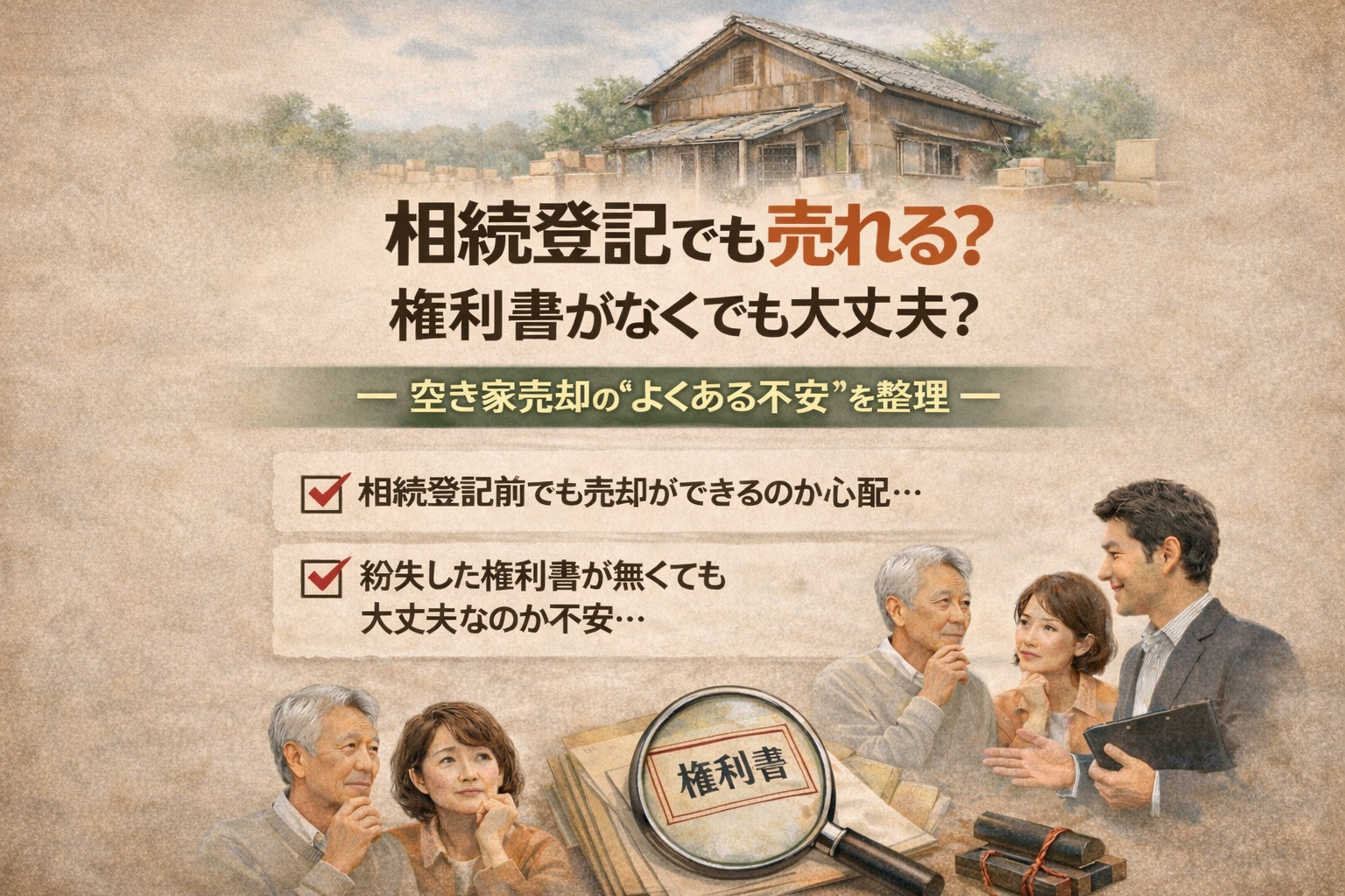 相続登記前でも売れる?権利書がなくても大丈夫?|空き家売却の“よくある不安”を整理